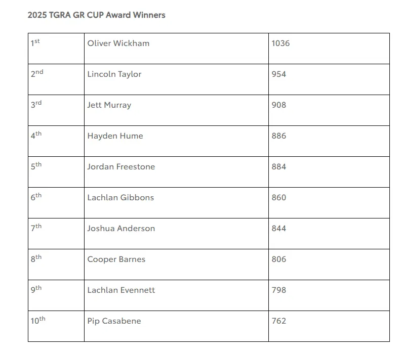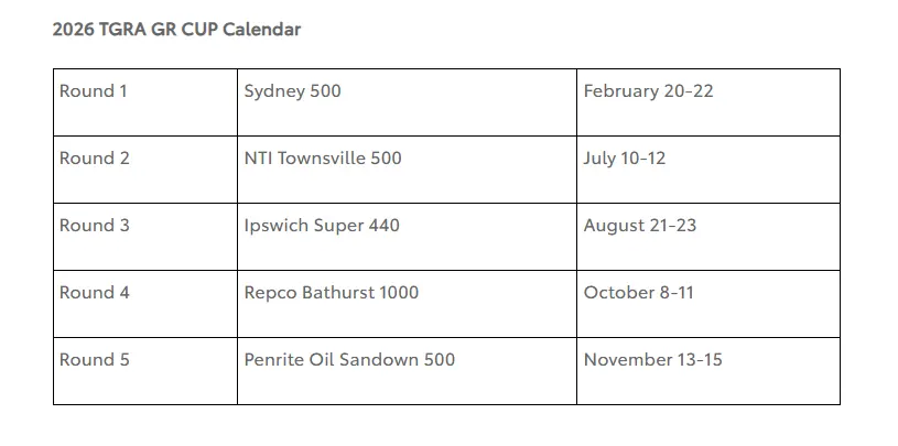 “It has been wonderful to watch some of the country’s most talented young racers use the TGRA GR CUP to further their careers in motorsport, and on behalf of Toyota Australia I can’t wait for the 2026 season.”