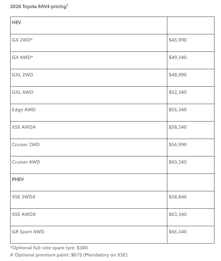 ALL-NEW TOYOTA RAV4 RANGE ARRIVING IN AUSTRALIAN SHOWROOMS IN 2026 PRICED FROM $45,990