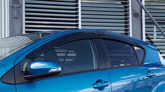 Slimline Weathershields assist in restricting the entry of wind and water when driving with windows in the slightly open position. This allows air flow through the cabin without exposing the occupants, interior and trim to the weather. They are sleek and integrate seamlessly with the Prius c’s styling.