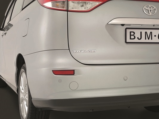 Reverse parking can be a challenge at the best of times. But Toyota Genuine Rear Park Assist[B4] can make even the tightest parking spot easy to negotiate. Four discreet colour-coded, ultrasonic sensors mounted in the rear bumper activate an audible 'beep' in the cabin that increases in frequency the closer your Tarago reverses towards objects behind it. Front Weathershields shown sold separately.Enter Description